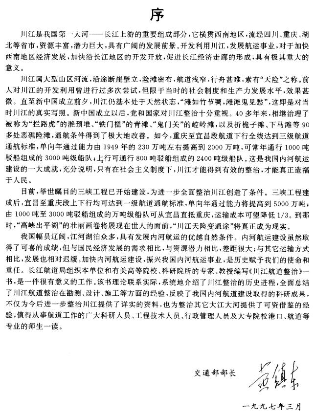 川江自从1915年开辟航道以来,经历了近百年的风雨变迁。随着三峡移民的搬迁和库区的渐趋形成,川江航道文物正有加速灭亡的势头。三峡工程在水位蓄至175米后,往日险滩众多的长江上游川江航道将形成500公里的“水上高速公路”。在川江航道的开辟史上,有一位英国人,曾被西方人誉为开拓中国西部的急先锋,他就是立德乐。1883年,立德乐以游历内地为名,从汉口乘木船逆水上行,沿途探索川江航道,一个多月后抵达重庆。次年, 立德乐便在汉口至宜昌航道上经营轮船运输业。14年后,立德乐驾着利川号轮从宜昌出发,试航川江20余天进入重庆。