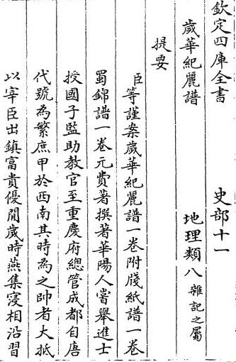 《岁华纪丽谱 牋纸谱 蜀锦谱》是元代学者费著(生卒年不详)编纂的一部记录巴蜀地区物产与民俗的珍贵文献,收录于《四库全书》子部谱录类。该书由三个独立谱录组成:《岁华纪丽谱》系统辑录蜀地节令风俗与民间庆典,《牋纸谱》详述唐宋时期四川名纸(如薛涛笺)的制造工艺与流变,《蜀锦谱》则专记宋代成都织锦院的管理制度与锦缎纹样。