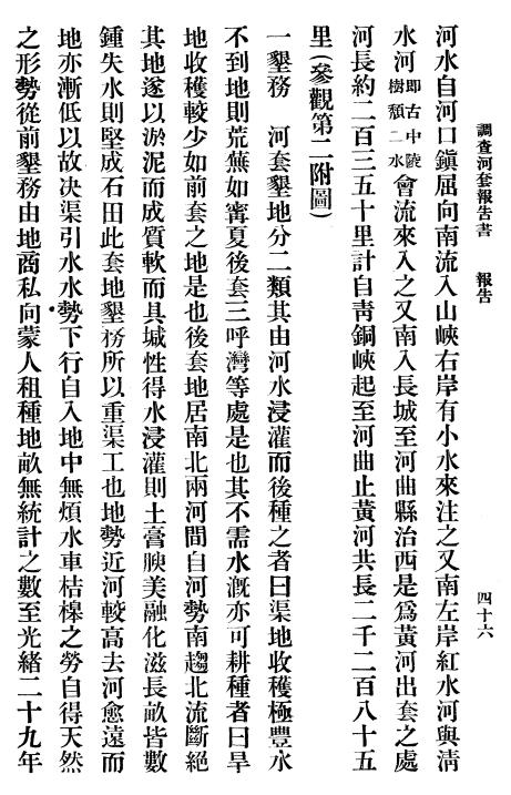 《调查河套报告书》是1923年由督办运河工程总局编辑处编著的实地考察文献,主要记录民国初期对河套地区(今内蒙古巴彦淖尔一带)水利、农业及社会经济的系统调查成果。该书是研究近代中国西北水利开发、边疆治理及黄河治理的重要历史资料。