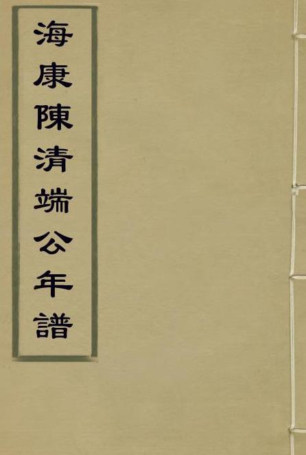 丁宗洛编著的《海康陈清端公年谱》是一部详细记载清代名臣陈瑸(1656—1718,谥号“清端”)生平事迹的编年体传记,成书于清道光年间,民国十年(1921年)以铅印本刊行,分上下两册。陈瑸为广东海康(今雷州)人,康熙朝廉吏,官至福建巡抚、闽浙总督,以清廉勤政、兴学治水著称,与于成龙、施世纶并称“康熙三大清官”。