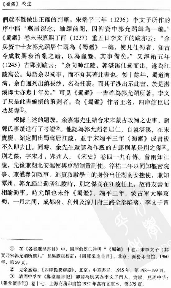 南宋郭允蹈《蜀鉴》是一部西南地区的通史著作。它记载了四川及其周边地区在宋代以前的历史发展变化,史料价值极高,是一部重要的历史著述。本次推出的校注本的特点是:融汇众家,详略得当,是一本完整的点校正确度高的、文字接近原貌的又能反映学术水平的校注本。