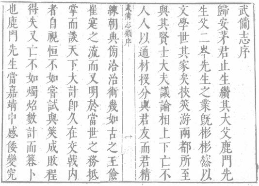 明茅元仪辑。二百四十卷。成书于天启元年(1621)。全书分五部分:《兵诀评》十八卷,辑古代九家兵书要诀;《战略考》三十三卷,辑春秋至元代各重大战役用兵战略;《阵练制》四十一卷,辑列代阵图、练兵及训习兵器等法;《军资乘》五十五卷,辑立营、行军、军械、河漕、后勤配备等事;《占度载》九十三卷,辑阴阳占卜及方舆、边防、航海诸事。此书并载录明代中国及日本、西洋等国先进武器,其中辑录各种书籍达二千余部,并附《自宝船厂开船从龙仕关出水直抵外国诸蕃图》,即俗称《郑和航海图》,保存军事、科技、外交史料甚丰。天启刻本有天启元年作者自序。