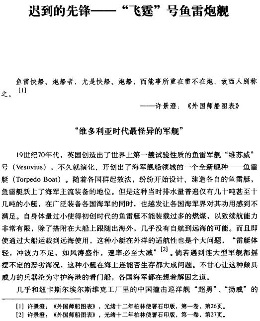 本书主要内容包括:迟到的先锋——“飞霆”号鱼雷炮舰;海鹰折翼——“飞鹰”号鱼雷炮舰;坠海星尘——“星宿”鱼雷艇等。