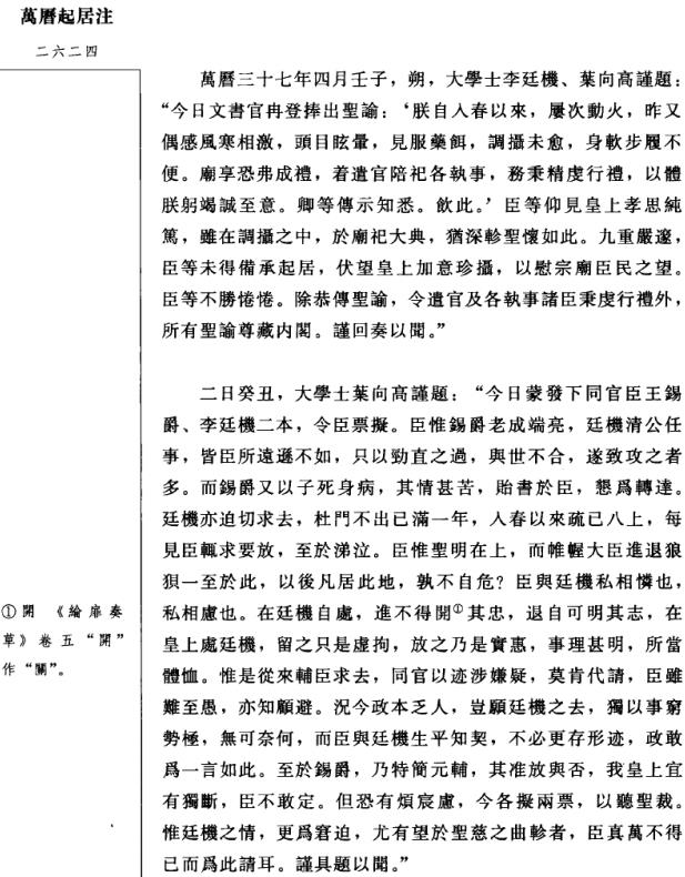 万历起居注一书,是二十世纪六十年代初期在大学学习史学史课程之时。那时已从谢国桢先生的名著《晚明史籍考》丶陶元珍先生刊载于《文史杂志》第四卷第七丶八期合刊(一九四四年出版)的《万历起居注》一文,以及其它有关史学史著作,得知中国自很早的时候起,就已经开始为帝王记注起居,而现在仍旧存在的大部头的帝王起居注,乃是以《万历起居注》为最早,它为研究近五十年之长的万历一朝的历史,提供了数量很大的宝贵资料。