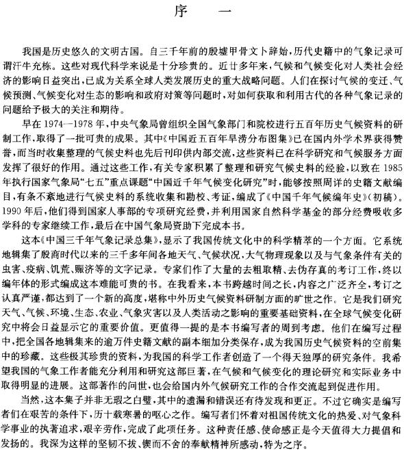 中国三千年气象记录总集系统地辑集了殷商时代以来的三千多年间各地天气、气候状况,大气物理现象以及与气象条件有关的虫害、疫病、饥荒等文字记录。