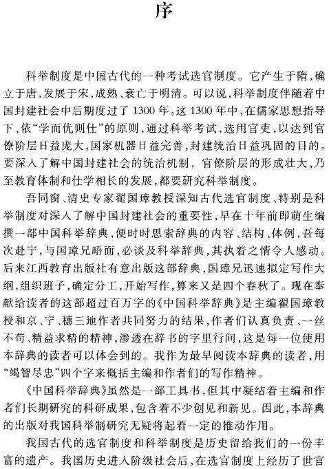 中国科举辞典收入词目9000余条,涵盖了与古代科举制度相关词目,包括科举名词、科举人物。书后附有中国科举大事记、进士名录、明清进士统计表、中国历史年代简表等。
