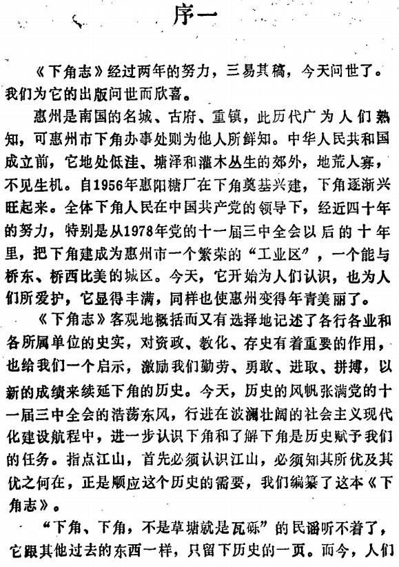 内容简介:惠州是南国的名城、古府、重镇,此历代广为人们熟知,可惠州市下角办事处则为他人所鲜知。建国前,它地处低洼、塘泽和灌木丛生的郊外,地荒人寡,不见生机。自1956年惠阳糖厂在下角奠基兴建,下角逐渐兴旺起来。全体下角人民经近四十年的努力,把下角建成为惠州市一个繁荣的“工业区”,一个能与桥东、桥西比美的城区。今天,它开始为人们认识,也为人们所爱护,它显得丰满,同样也使惠州变得年青美丽了。《下角志》客观地概括而又有选择地记述了各行各业和各所属单位的史实,对资政、教化、存史有着重要的作用,也给我们一个启示,激励我们勤劳、勇敢、取、拼搏,以新的成绩来续延下角的历史。本志包括建置、自然环境、人口、政治、文化、经济等章。