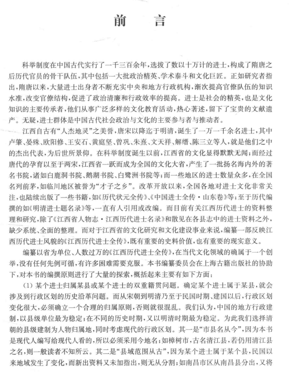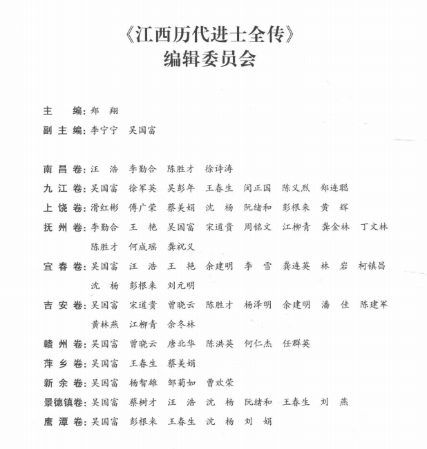 《江西历代进士全传》由九江学院组织编撰,由上海古籍出版社正式出版发行。全书收录进士11671 名,直接引用文献3000余种,共计500余万字。该书是国内第一部全面反映一个省份历代进士全貌的大型工具书,具有较高的文献和资料价值。