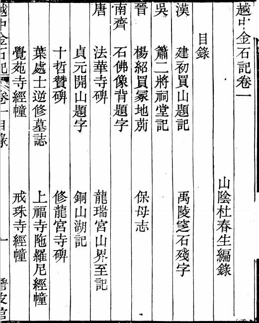 《越中金石记》十卷,山阴杜春生编录,道光十年詹波馆刊,因印本流传不多,市价颇高,曩得一部,在二十金以上。近年得见新印白纸本,末有陈遹声吴隐二跋,吴跋署己未仲秋,盖是民国八年,有云:是书以道光庚寅付梓,距今九十馀年,传本稀如星凤,乡邦之雅故,翰墨之伟观,惧其久而失传也,拙藏有初印精本,爰与同里陈丈蓉曙,吾宗善庆,集资重付剞劂,以广其传,阅数月而工竣。似是近日重刻,而翻阅书中断烂处比比皆是,因知此实是原板新印,非新刊也。其实修补旧板印以行世,亦何尝不是好事,如会稽徐氏之小李山房本《札朴》是也,今观漫漶之处并不补正,虽自称新板,实则一目了然,即欲欺近视者亦不可得。《四库简明目录标注》卷五,《观妙斋金石文考略》下云,道光丁酉盛氏印本,原雍正中刊本,盛氏得其板片,诈为重刊,正是同一的例,此等事盖亦古已有之也。