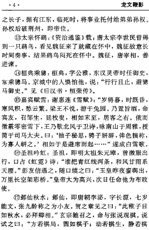 《龙文鞭影》原名《蒙养故事》,明代万历时萧良有撰。后经安徽人杨臣诤加以增订,改名《龙文鞭影》,形象地反映了该书“逸而功倍”的效果。萧良有,字以占,写汉冲,汉阳人。自幼聪颖异常,有神童之誉。明万历八年(1508年)会试第一,进修撰,任国子监祭酒,在当时声望极高。龙文,古时良马名也。见鞭影则疾驰。