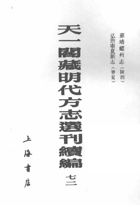 本册包含:(嘉靖耀州志 弘治宁夏新志)两部县志