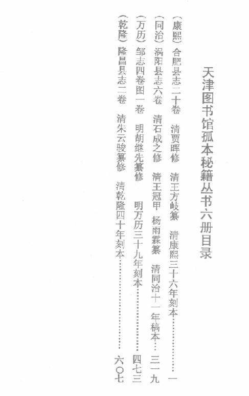 本册包含:(康熙合肥县志 同治涡阳县志 万历邹志 乾隆隆昌县志)四部县志