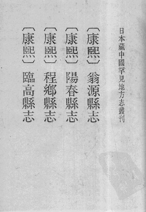 本册包含:(康熙翁源县志 康熙阳春县志 康熙程乡县志 康熙临高县志)四部县志