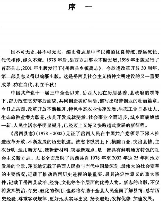 内容简介:本志为岳西第二部县志。记述时段,上限起自1978年,下限止于2002年。对需完整记述的部分事类,适当上溯或下延。志首增设2008年岳西县地图。附录中设置“志余”,记载2003~2008年全县重大发展事项及县五大班子任职表。照片拍摄时间截止2008年底。