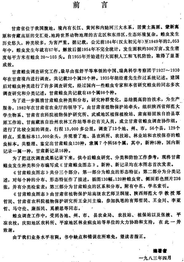 编纂单位:甘肃省蝗虫调查协作组