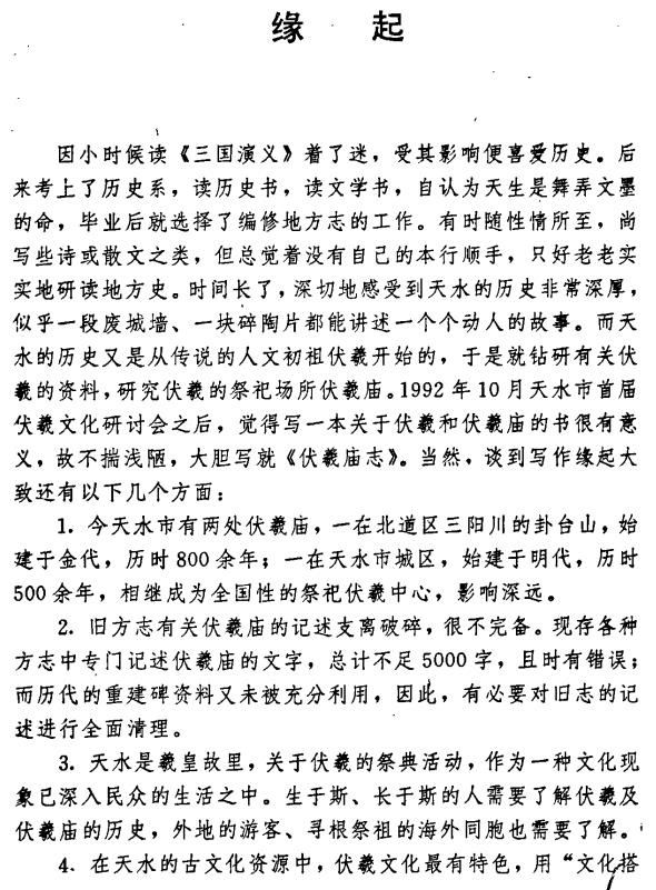 内容简介:本志记述了伏羲庙的建筑、周边的名胜古迹以及相关的传说轶闻、诗歌等。