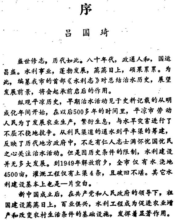 内容简介:本志记述了平凉市水利工作发展的历史与现状。包括农田水利、水利工程建设、水土保持工作、防汛抗旱等。
