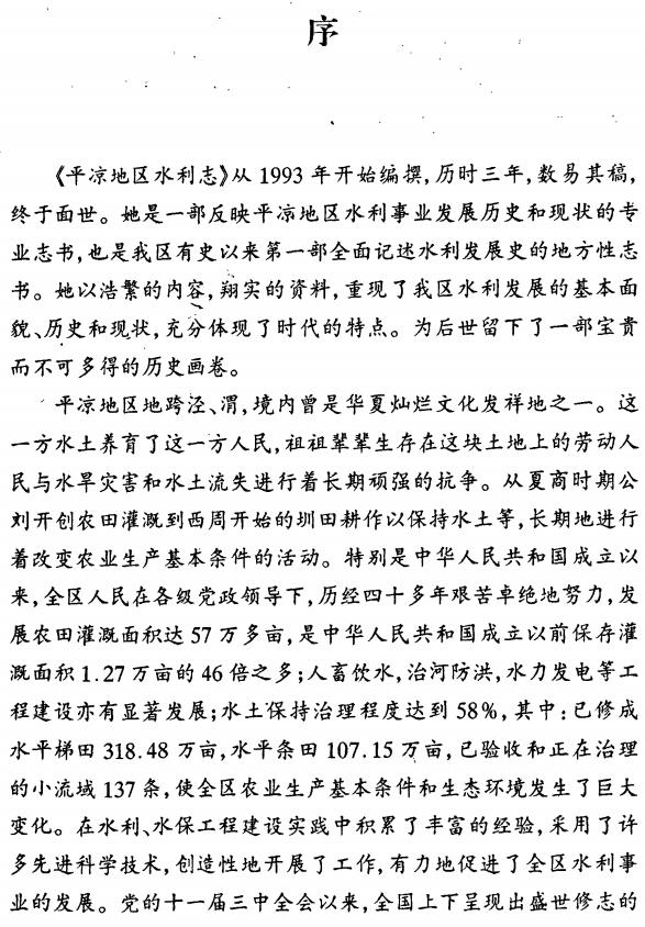 内容简介:本志记述了平凉市水利事业发展的历史与现状。包括农田水利建设、水利工程建设、水土保持工作、水利管理、水利科技等。