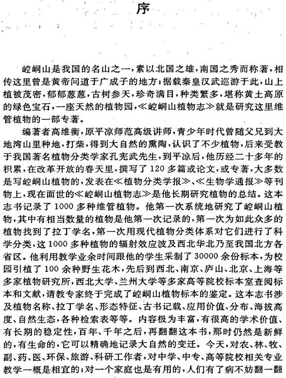 内容简介:崆峒山是我国的名山之一,素以北国之雄,南国之秀而称著,相传这里曾是黄帝问道于广成子的地方;据载秦皇汉武巡游于此,山上植被茂密,郁郁葱葱,古树参天,珍奇满目,种类繁多,堪称黄土高原的绿色宝石,一座天然的植物园,崆峒山植物志就是研究这里维管植物的一部专著。本志主要记载了野生维管植物和主要栽培植物,还记载了部分引进植物和观赏植物。
