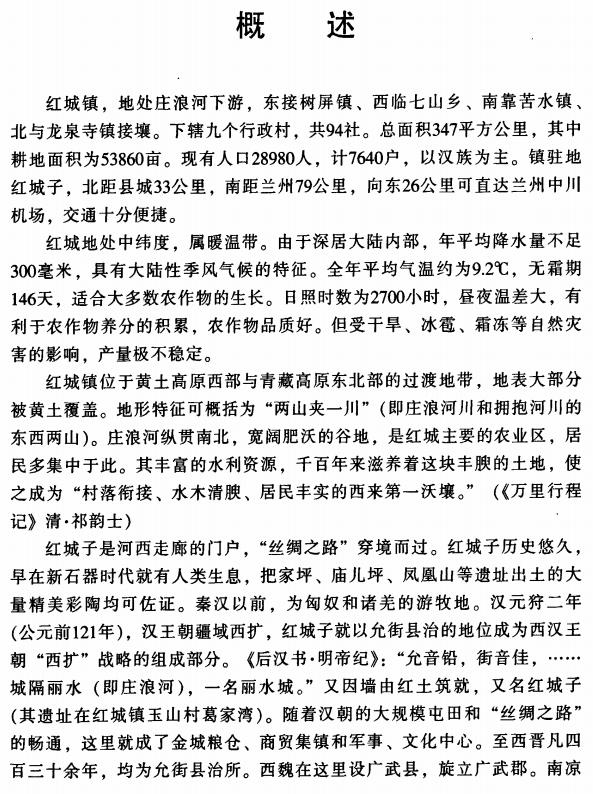 内容简介:《红城志》编纂历时五年,样稿七校,我们的劳动成果即将付梓,其感叹欣喜之情不可言状。2003年秋,红城镇党委书记的张宏伟、镇长白建山有感于红城悠久的历史和厚重的人文景观,以及改革开放以来红城各个方面取得的巨大成就,萌发了编纂《红城志》的初步设想。他们和永登二中任教的薛文章、陈世栋老师商谈后不谋而合。出于共同的志趣和服务桑梓的愿望,大家决定编纂红城历史上第一部志书,展现红城的历史,凝聚人心,激发广大群众热爱家乡的激情。当时编纂《红城志》的想法,也得到了时任永登县委常委、宣传部长史存瑞的热情支持。