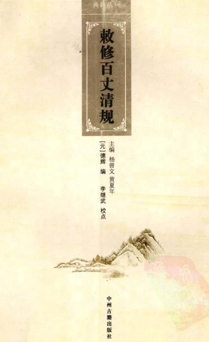 到元元统三年(1335)有《敕修百丈清规》(八卷)面世。《敕修百丈清规》略称《百丈清规》,也称《清规》。元元统三年(1335)百丈山大智寿圣禅寺住持释德辉奉敕重编,大龙翔集寺住持释大沂校正,收入《大正藏》第48卷。释德辉,字东阳,临济宗杨歧派释晦机元熙弟子,元天历二年(1319),嗣住江西道龙兴路百丈山(今江西奉新县境)大智寿圣禅寺。至元元年(1335),奉敕重修《百丈清规》八卷。今有明正统七年(1442)刻本传世。