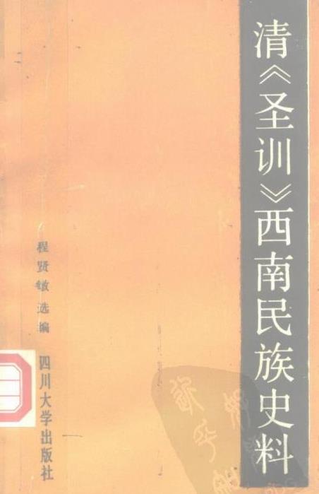 《清〈圣训〉西南民族史料》是四川大学程贤敏教授编纂的专题史料集,1988年由四川民族出版社出版。该书系统辑录了清代历朝《圣训》中涉及云南、贵州、四川、西藏等西南民族地区的谕旨、奏议等官方文书,是研究清王朝边疆治理与民族政策的核心文献。