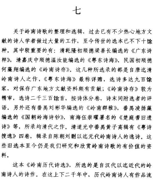 《岭南历代诗选》涵盖有关岭南(广东以及与广东在历史上、也理上有密切关系的一些岭南地域)的人文学科和自然学科,包括历史政治、经济发展、社会文化、自然资源和人物传记等方面,并从历代有关岭南之名著中选择若干为读者所需的典籍,编校主释,选粹重印。