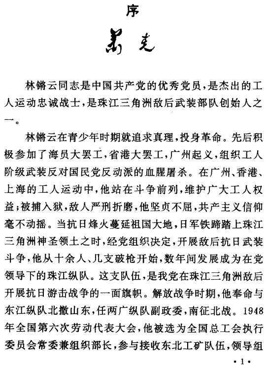革命历程:记述林锵云从香港海员到工人领袖的成长经历,突出其在省港大罢工、抗日战争(如组织港澳同胞支援抗战)及解放战争中的贡献。