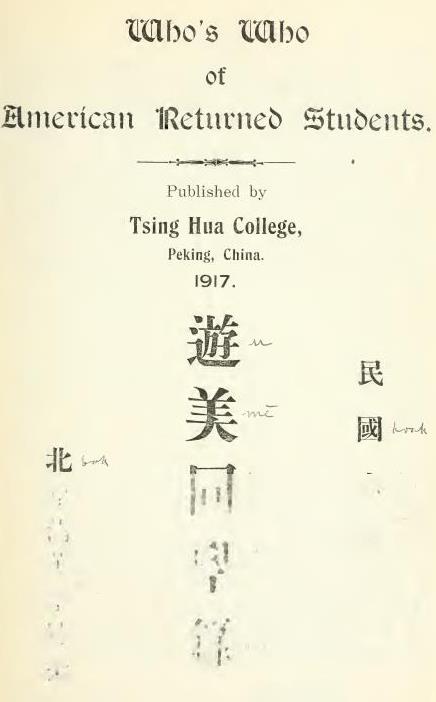 19世纪末至20世纪初,清政府推行“庚款留学”计划,选派大批学生赴美深造,其中以1909年成立的“游美学务处”(后发展为清华学堂)为核心机构。1917年,由这批留学生自发组织的“游美同学会”编纂了《游美同学录》,旨在联络同窗、记录留学经历,并促进归国后的学术与社会合作。