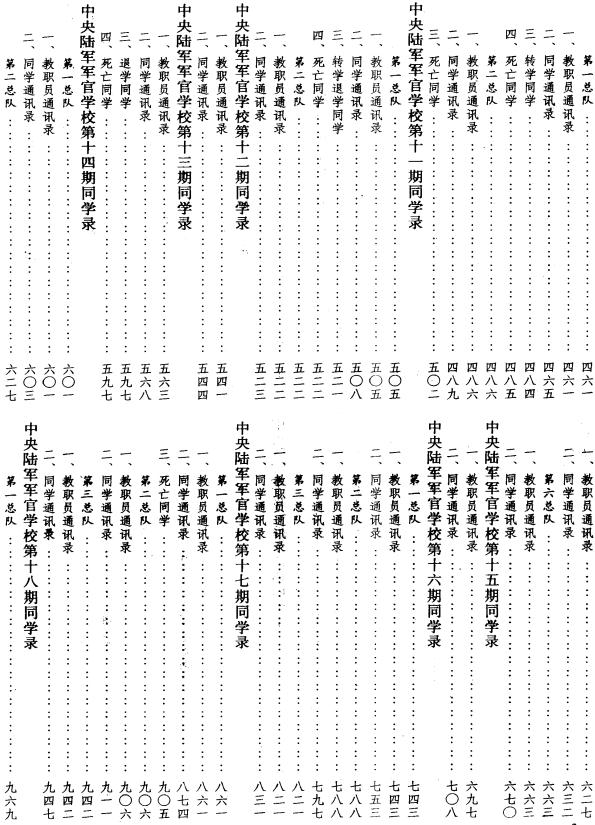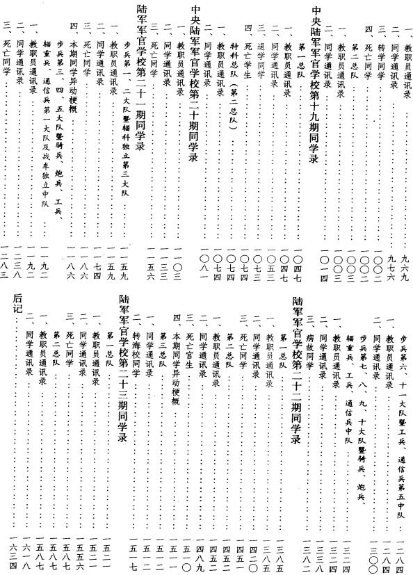 提要:该书汇集了1924年至1949年黄埔军校本校在大陆毕业的1至23期全部同学名录。其内容包括级职、姓名、别号、年龄、籍贯、出身和当时的通讯处等,校本部长官等