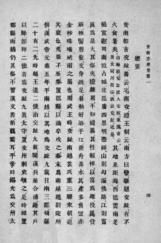 安南志原为法国于1932年在河内出版,前部分为清人高熊徵所撰《安南志纪要》,后部分共三卷,记述明代交的政治,军事,经济,文化等事迹,全书约四万八千多字,笔者幸藏一册。早年我国越南史专家张秀民先生曾认定此书为法国人误题为清人高熊徵所撰,并认为此书为明代永乐五年(1407年)后新设立的交布政使司(其辖境相当于今越南北方)所修的地方志,这引起当时中越史学界的不少轰动。笔者考越南阮朝潘清简等所撰《钦定越史通鉴纲目》,发现《钦定越史通鉴纲目》早已多处有"高熊徵《安南志原》"的内容,所以此书并非法国人在1932年出版时误题,而早在阮朝修撰《钦定越史通鉴纲目》时已经误题。笔者认为法国人所出版《安南志原》后部分内容是否为明代《交总志》仍然待考,笔者曾查阅清人傅维鳞所撰《明书经籍志》,该书录有明代所修新志共513种,其中包括有《交总志》《交通志》《交州府志》《清化府志》《谅江府志》《三江府志》《建平,奉化府志》《建昌,镇蛮府志》《新平,顺化,升华三府志》(一册)《广威,嘉兴,归化,宁化,演州五州志》(一册)《宣化府志》《义安府志》《新安府志》,明代在交耻所设置的十七府中仅缺太原,北江,谅山三府志】'附,明人杨士奇所辑《文渊阁书目》卷二十又收有《交总志》《交州府志》《谅江府志》《新安府志》《建昌,镇蛮府志》《奉化,建平府志》《三江府志》《太原府志》《清化府志》《义安府志》《新平,顺化,升华三府志》(一册)《广威,嘉兴,归《安南志》引,明代所修《永乐大典》卷七千五百一十四又收有《安南府志》,可见要确认该书后部分为《交耻总志》仍需要进一步考证。另外,清人高熊徵所撰《郢雪斋纂稿》(清康熙刻本)卷二中也录有高氏《安南志纪要序》,也可证明法国人所出版的《安南志原》前部分为原高氏所撰!