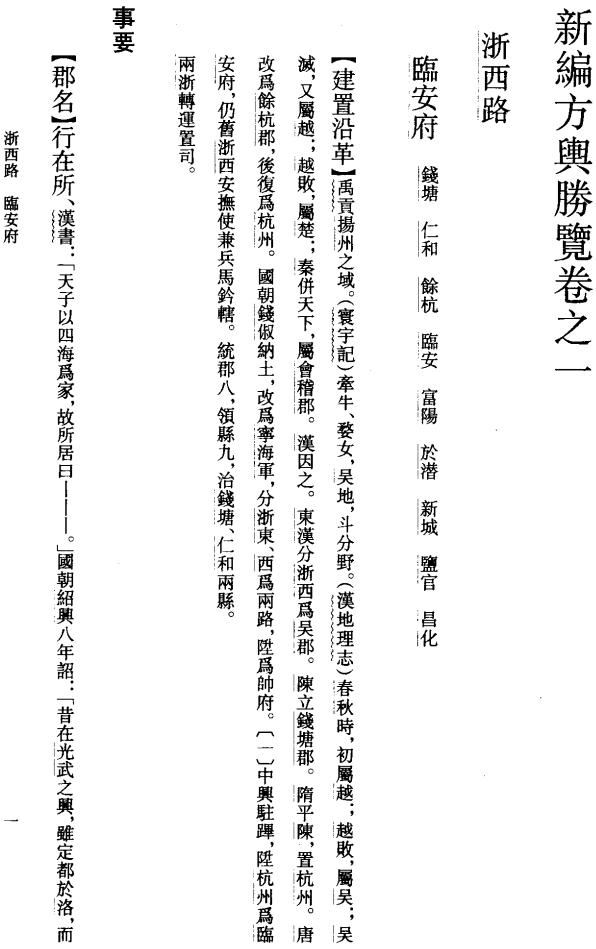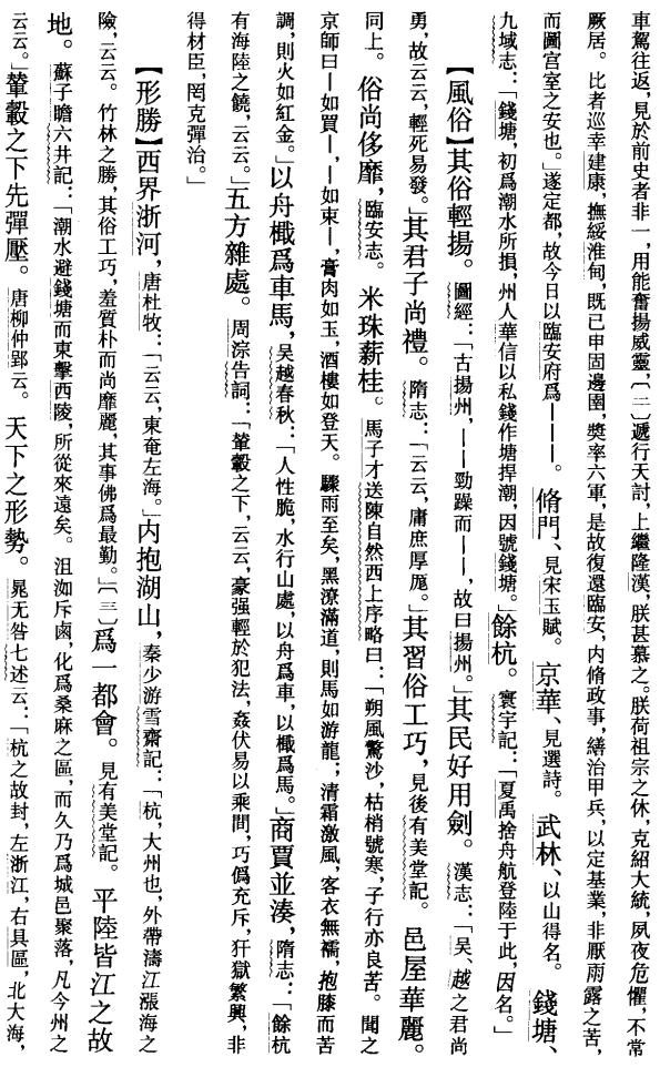 方舆胜览是南宋祝穆编撰的地理类书籍,全书共七十卷。主要记载了南宋临安府所辖地区的郡名、风俗、人物、题咏等内容。中华书局2003年出版南京师范大学施和金教授的点校本。该书的元刻本不少,单北京图书馆就收藏有三种,其它如北京大学图书馆、上海图书馆、南京博物院图书馆、杭州大学图书馆、四川师范大学图书馆等也都有收藏,收藏元刻残本的还有福建省图书馆、贵州省图书馆、南京图书馆、清华大学图书馆、哈尔滨图书馆等单位。清代没有刻印过方舆胜览,但有很多新的抄本问世。除四库全书抄本外,我们这次还看到了北京图书馆的昆山徐乾学傅是楼抄本、上海图书馆的江苏缪庭桂震无处齌抄本、台湾文海出版社的孔氏岳雪楼抄本。这四种抄本中,四库本和傅是楼本舆北京图书馆所藏宋本相同,这显然是底本不同的缘故。
