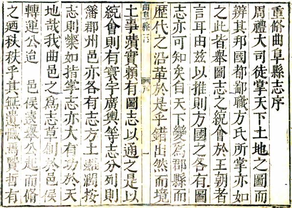 康熙曲阜县志,六卷。清孔弘毅原本,孔胤淳续修。孔胤淳,康熙初年由廪生任曲阜知县。按曲阜志,创修于明嘉靖中藩僚孔弘干,再修于万历二十一年(1593)孔弘复,弘复由廪生袭曲阜令,三修于崇祯八年(1635)孔弘毅,此志为四修。孔胤淳掌曲阜县后,见旧志简残编断,其间中经鼎革,职官赋税、建置学校均异往昔。始开局修纂,旁搜于载籍,求逸于野史,基本延袭旧志体,遂成新志。《曲阜县志》康熙十二年(1673)刻本。全书六卷,分土地志、人民志、政事志、文献志四大纲,为:疆域、沿革、版籍、赋役、职官、祀典、选举、武备、帝王、圣贤、宸翰、列传诸门,每门下又分诸小目。按曲阜疆域虽小,然为孔子故乡,教化风俗,不同于他地,且古迹甚多。此志修纂时,尚能详考精研。其取材,不同于他志。如职官志表,详细记载孔子家世族人及其弟子,均为翔实。