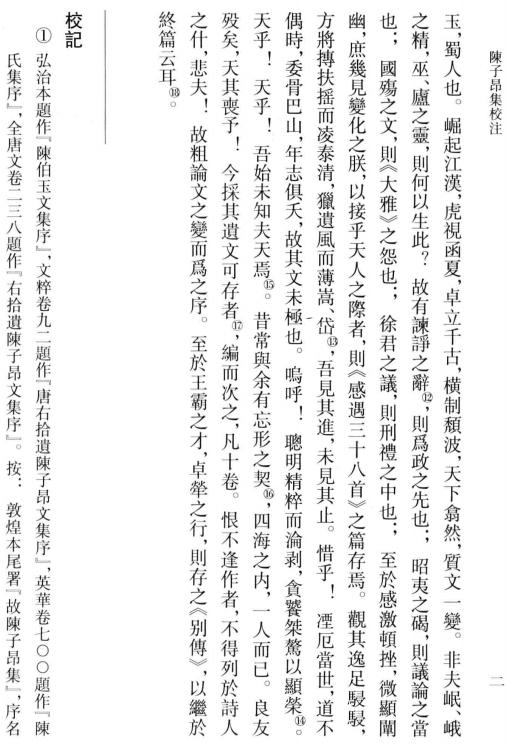 陈子昂集校注以国家图书馆藏明弘治四年杨澄校刻《陈伯玉文集》爲底本,是爲现存最早的陈集足本。注释包括题解丶系年丶训释丶考证丶集评。凡本集诗文所用人名丶地名丶书名丶典故丶典章制度丶难懂词语丶所引或化用前人诗文丶所涉及之史实,必皆出注。附录有误收误题诗考丶陈子昂年谱丶传记资料丶诸家评论丶引用书目。