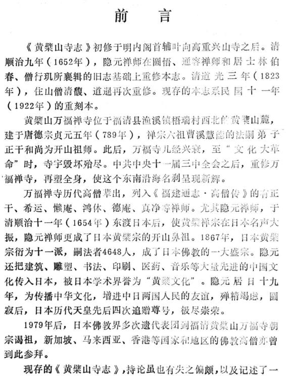 内容简介:《黄檗山寺志》初修于明内阁首辅叶向高重兴山寺之后。清顺治九年(1652年),隐元禅师在圆、通容师和居士伯春、僧行现所襄辑的旧志基础上重修本志。清道光三年(1823年),住山僧清馥、道暹再次重修。现存的本志系民国十一(1922年)的重刻本。编纂单位:福清县志编纂委员会,福清县宗教局整理