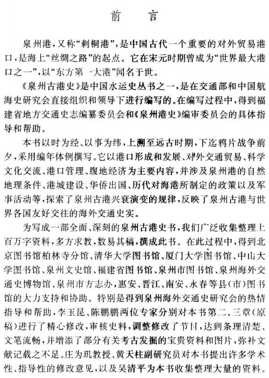 内容简介:《泉州古港史》是中国水运史丛书之一,是在交通部和中国航海史研究会直接组织和领导下进行编写的。在编写过程中,得到福建省地方交通史志编纂委员会和《泉州港史》编审委员会的具体指导和帮助。本书以时为经、以事为纬,上溯至远古时期,下迄鸦片战争前夕,采用编年体例撰写。它以港口形成和发展、对外交通贸易、科学文化交流、港口管理、腹地经济为主要内容,并涉及泉州港的自然地理条件、港城建设、华侨出国、历代对海港所制定的政策以及军事活动等,探索了泉州古港兴衰演变的规律,反映了泉州古港与世界各国友好交往的海外交通史实。编纂单位:《泉州古港史》编写委员会 编