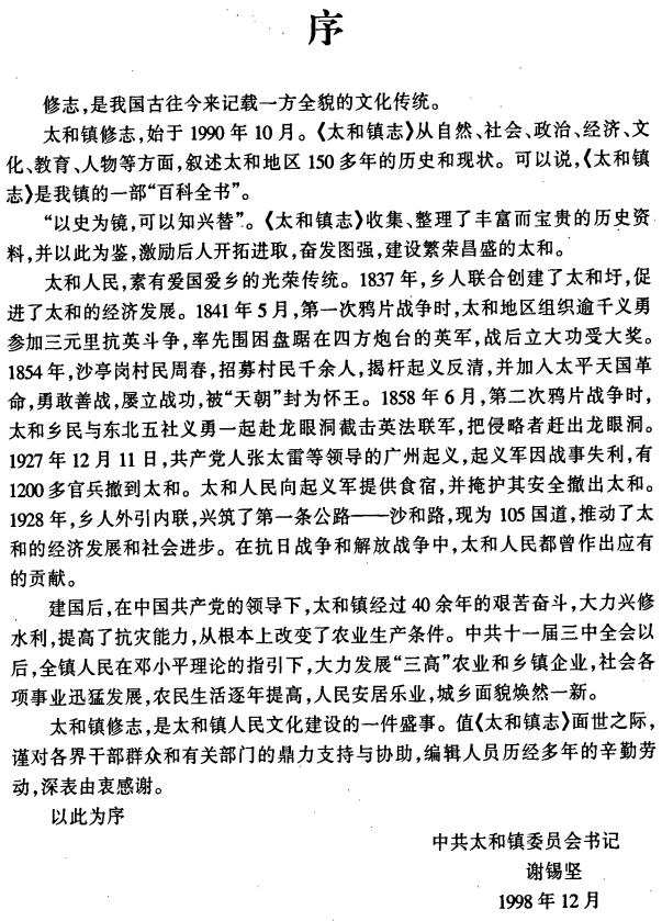 编纂单位:广州市白云太和镇政府