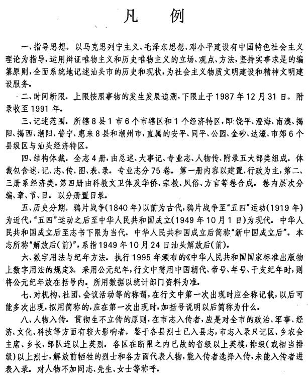 内容简介:本志记述范围包括所辖8县1市6个市辖区和1个经济特区,即:饶平、澄海、南澳、揭阳、揭西、潮阳、普宁、惠来8县和潮州市,直属的安平、同平、公园、金砂、达濠、市郊6个县级区与汕头经济特区。时间断限。上限按照事物的发生发展追溯,下限止于1987年12月31日。附录收至1991年。结构体裁。全志4册,由总述、大事记、专业志、人物传、附录五大部类组成。体裁包含述、记、志、传、图、表、录。专业志分75卷。第一册内容以建置、行政为主,第二、三册系经济类,第四册由科教文卫体及华侨、宗教、风俗、方言等卷合成。卷内层次分编、章、节、目。以分册置目录。