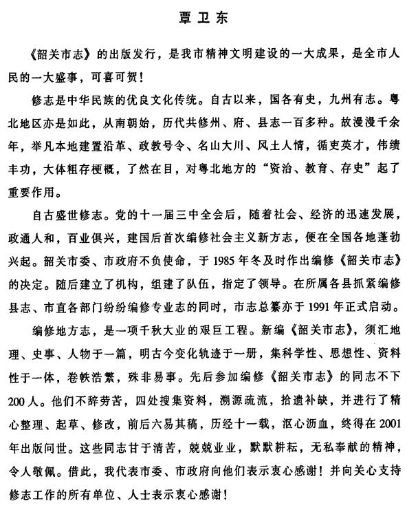 内容简介:修志是中华民族的优良文化传统。自古以来,国各有史,九州有志。粤北地区亦是如此,从南朝始,历代共修州、府、县志一百多种。故漫漫千余年,举凡本地建置沿革、政教号令、名山大川、风土人情,循吏英才,伟绩丰功,大体粗存梗概,了然在目,对粤北地方的“资治、教育、存史”起了重要作用。编修地方志,是一项千秋大业的艰巨工程。新编《韶关市志》,须汇地理、史事、人物于一篇,明古今变化轨迹于一册,集科学性、思想性、资料性于一体,卷帙浩繁,殊非易事。先后参加编修《韶关市志》的同志不下200人。他们不辞劳苦,四处搜集资料,溯源疏流,拾遗补缺,并进行了精心整理、起草、修改,前后六易其稿,历经十一载,沤心沥血,终得在2001年出版问世。这些同志甘于清苦,兢兢业业,默默耕耘,无私奉献的精神,令人敬佩。