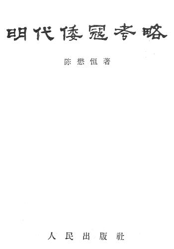 陈懋恒:明代倭寇考略 1957版 PDF下载