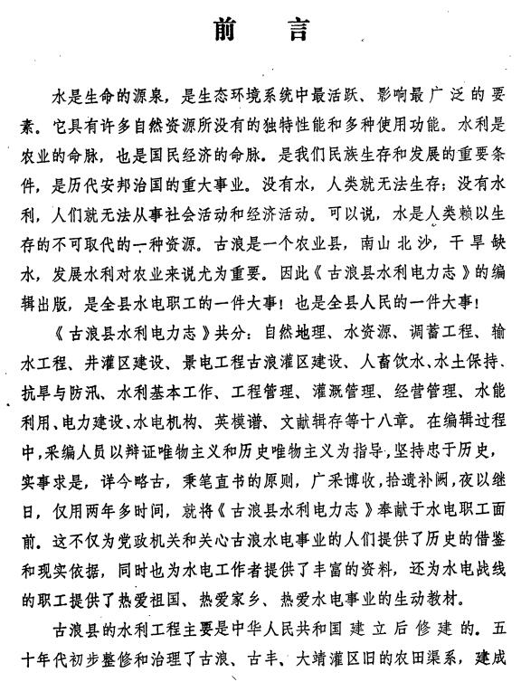 内容简介:本志记述了古浪县水利事业与电力事业发展的历史与现状。包括调蓄工程、输水工程、人畜饮水工程、水利工程管理、水利经营管理、电力建设、水能利用等。