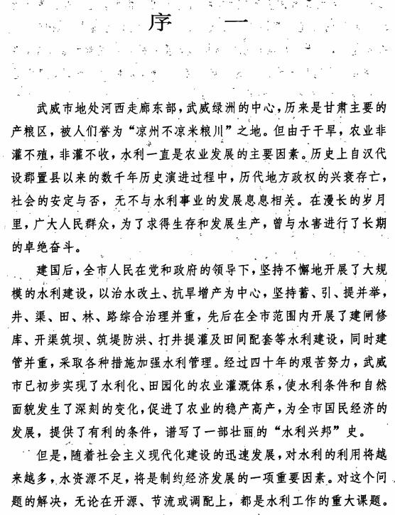 内容简介:本志记述了武威市水利事业发展的历史和现状。抗旱防汛、灌区建设、水利工程建设、水利管理、水利科技教育等。以史为镜,可知兴替,鉴史创新,更具未来。正是为了承前启后,继往开来,武威市水利局组织人员编修了《武威市水利志》。这部志书洋洋四十余万言,以其正确的观点,广博的资料,丰富翔实的内容,客观的记载了武威水利发展的自然社会条件,历史过程和现状,反映了勤劳勇敢的武威人民在治水斗争中的成功经验和失败的教训,它的杀青付梓,足起“存史、资治、教化”作用,在新的历史条件下,将为我们认识市情,掌握市情,进一步发展水利事业提供历史借鉴和现实依据。